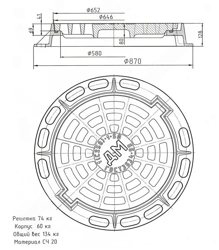 • (С250) – класс нагрузки по ГОСТ 3634-99 (способен выдерживать нагрузку до 25 тонн);