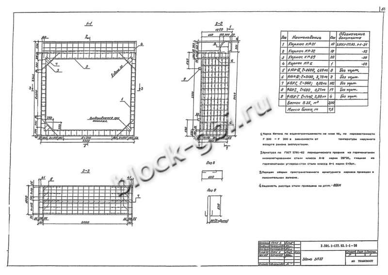Железобетонные оголовка ЗП 37 для прямоугольных водопропускных труб армируются сетками и каркасами из стержней периодического профиля из углеродистой горячекатаной стали класса А-II. Монтажные петли конструкций изготавливаются из стержневой гладкой горячекатаной арматурной стали класса А-I или периодического профиля класса Ас-II.