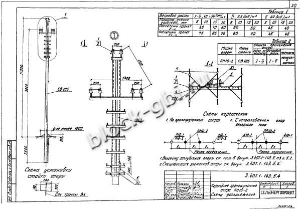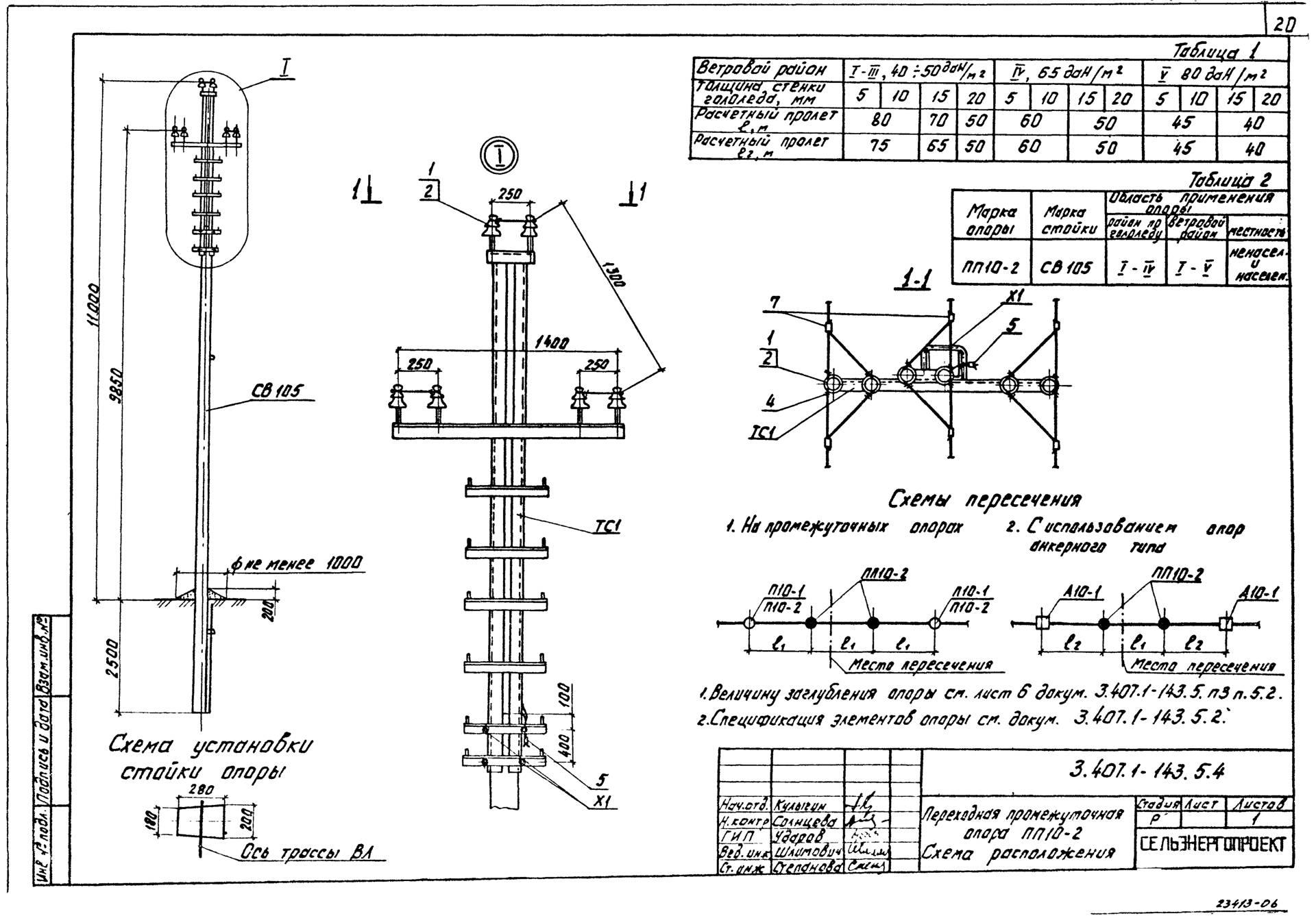 Установка изделий переходные промежуточные опоры ПП10-2 для ВЛ 10кВ для пересечения с инженерными сооружениями начинается с выкладки деталей опоры вдоль трассы, для ее дальнейшей сборки. Собранную на земле, конструкцию опоры ЛЭП с помощью крана поднимают в проектное положение и устанавливают в цилиндрический котлован с заполнением пустот песчано-гравийной смесью. В грунтах с малой несущей способностью прочность крепления достигается путем фиксирования стоек опор ригелями и установкой их на специальные опорные плиты. Для крепления в земле оттяжек на проектном расстоянии от опоры устанавливаются анкерные плиты, или другие фундаментные конструкции в соответствии с проектом.