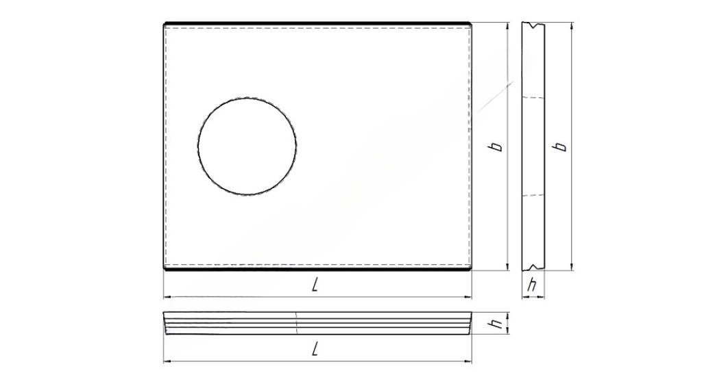 Размеры зависят от типа: длина 3000–6000 мм, ширина 1500–3000 мм, толщина 200–300 мм.