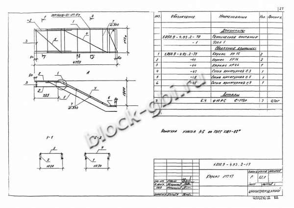 редельного удлинения; термомеханически упрочненная стержневая арматурная сталь классов Ат-IIIС и Ат-IVС по ГОСТ 10884. В качестве арматуры верхних каркасов принимается стальная проволока периодического профиля классом Вр-I по ГОСТ 6727 и класса Врп-I по ТУ 14-4-1322-85. Закладные детали элементов лестниц изготавливаются из углеродистой стали класса С38/23.