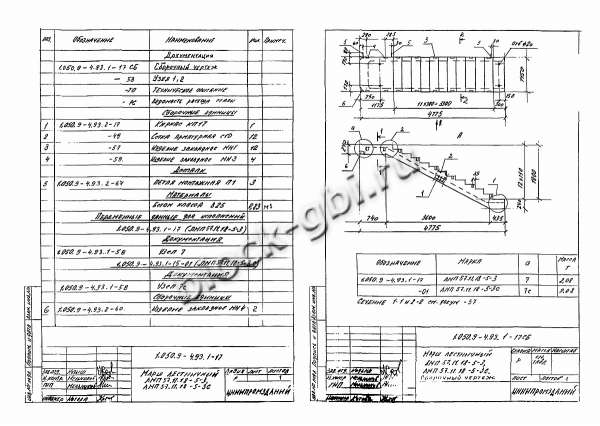 Сборные лестницы и их отдельные элементы – лестничные марши ЛМП 57.11.18-5-3 железобетонные – армируются пространственными каркасами, состоящими из плоских и гнутых каркасов. В качестве рабочей арматуры нижних каркасов принимается: стержневая горячекатаная арматурная сталь классов А-I и А-III по ГОСТ 5781 и А-IIIв, изготавливаемая из арматурной стали класса А-III, упрочненной вытяжкой с контролем величины напряжения и п